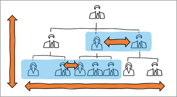 Ya que los OKRs a nivel organización, los OKRs a nivel división, los OKRs a nivel departamento y los OKRs a nivel equipo, son transparentes y visibles para todos, la alineación que se puede lograr es extraordinaria (esto se conoce como alineación vertical).