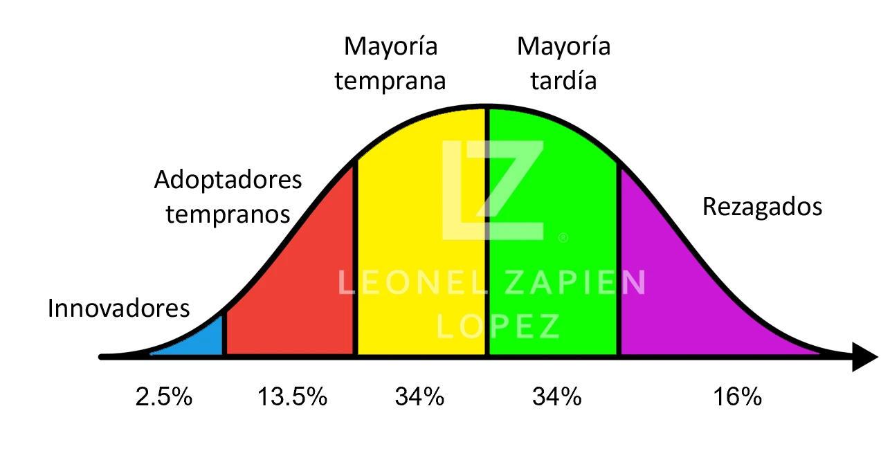 La curva de Adopción Tecnológica, curva de Adopción de las Innovaciones, o curva de Rogers, es un modelo de referencia creado por Everett Rogers que ayuda a identificar el comportamiento de las personas ante una adopción tecnológica, pero que ayuda a modelar de igual manera cómo las personas que pueden apoyar y oponerse a un cambio. Esta curva indica que existen los siguientes “tipos” de personas: