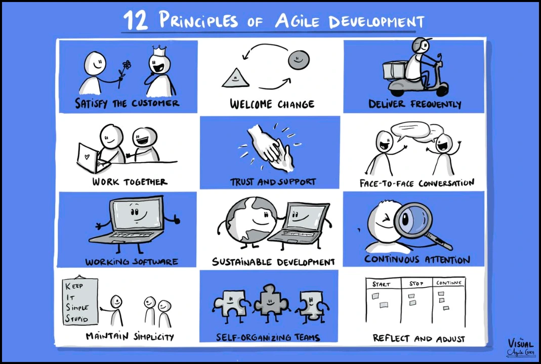 De esta reunión, los 17 asistentes resumieron los principios sobre los que se basan los métodos alternativos en los que estaban trabajando, y la esencia de esto quedó definida en 4 valores y 12 principios: Lo que ha quedado denominado como Manifiesto Ágil.